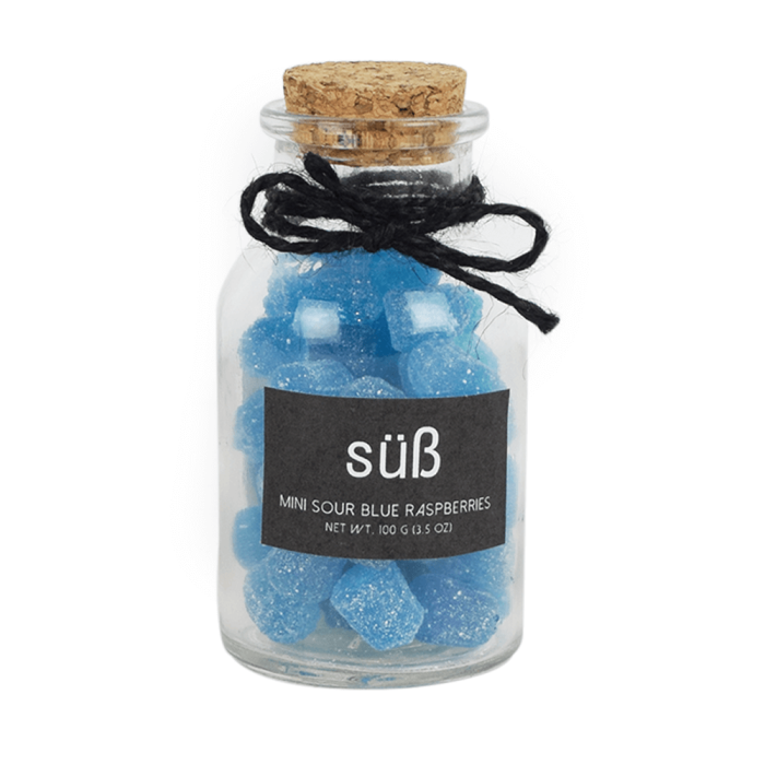 Sub Mini Sour Blue Raspberries 100g: These are so remarkably delicious. These sweet and sour, sugar-speckled blue raspberry flavoured gummies are mouth-wateringly decadent with amazing raspberry flavour.